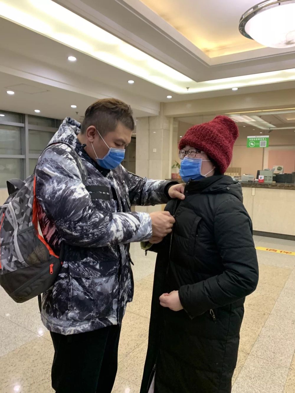 送行時,劉曉宇丈夫為她拉好拉鏈。