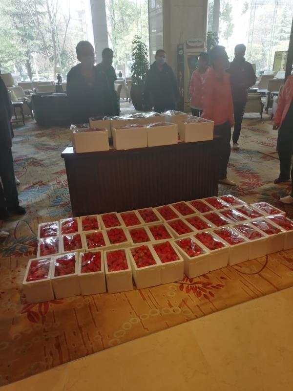 據(jù)前來送草莓的康復(fù)患者稱,這些草莓是江岸方艙醫(yī)院64名病友花費了1.6萬元購買送給河北的醫(yī)護人員。為了保證草莓的新鮮,武漢當(dāng)?shù)剞r(nóng)民從凌晨3點就開始采摘。“這是我們的一點心意,如果不是你們的幫助,單靠武漢的醫(yī)務(wù)人員確實是挺不住的,很感謝你們從全國各地來幫助我們,這次疫情來的很突然,我的母親也因病毒感染去世。小家的母親走了,但是你們卻拯救了武漢這個大家。非常感謝你們。希望大家把這點心意和問候帶回河北,同時也希望大家一路平安,感謝你們對我們武漢的很大幫助。謝謝大家!”