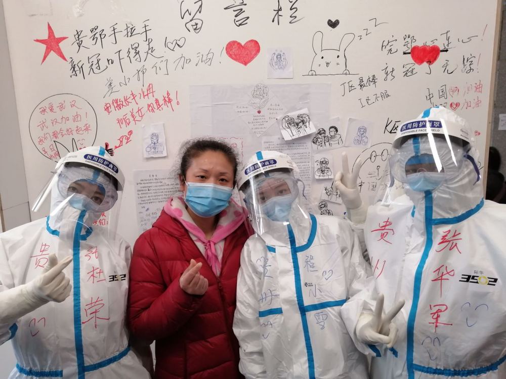 圖為貴州醫科大學附屬醫院援武漢醫療隊程小雪與患者和同事們。