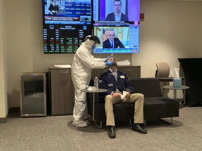 志愿者醫(yī)生為疑似新冠感染者作鼻咽喉拭子檢測(cè)。(陳揚(yáng)洺 供圖)