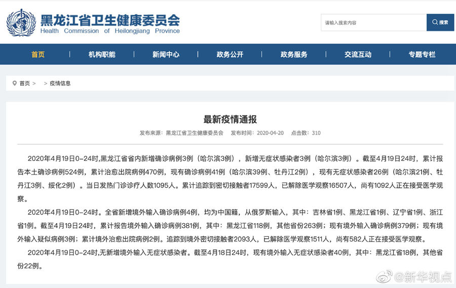 4月19日黑龍江省新增境外輸入確診病例4例 省內新增確診病例3例-新華網(wǎng)