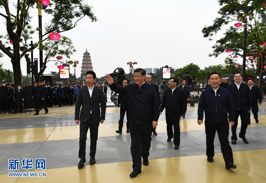 傍晚時分,習近平乘車來到毗鄰大雁塔的大唐不夜城步行街。疫情發(fā)生以來,昔日熙熙攘攘的步行街一度空蕩無人,現(xiàn)在又開始熱鬧起來。習近平走進步行街,了解步行街恢復經(jīng)營狀況。沿途游客看見總書記,驚喜地歡呼起來,習近平頻頻揮手致意。他走進老字號西安飯莊,同店員和正在就餐的顧客熱情交談。習近平強調(diào),要在科學防控疫情的前提下,有序推動各類商場、市場復商復市,努力恢復正常生活秩序。