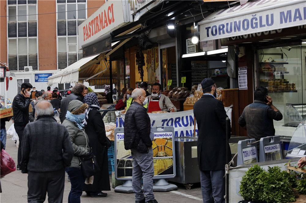 4月22日,安卡拉市民在購物,幾乎都戴了口罩。新華社發(穆斯塔法·卡亞攝)