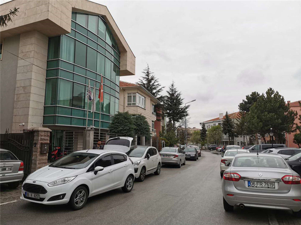 4月22日,記者在安卡拉的辦公場所附近,一所幼兒園已停課,一家會計師事務所照常營業。新華社記者鄭思遠攝
