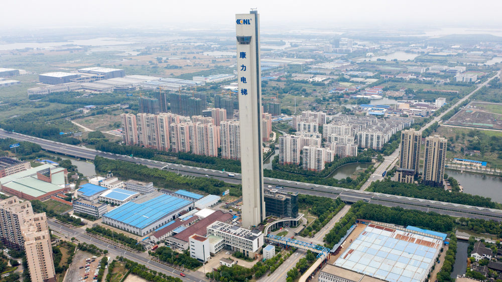 站在288米高的康力電梯試驗塔上