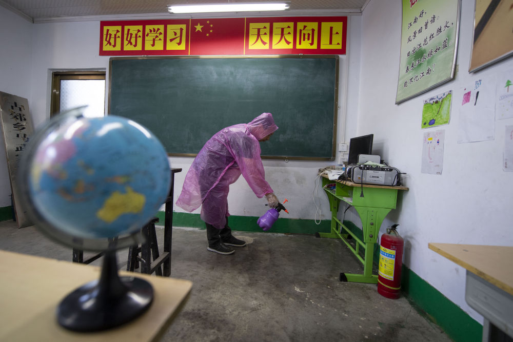 開學前兩周,學校老師在當?shù)匦l(wèi)生院的指導下,對校內(nèi)教室、宿舍、食堂等地進行消殺和通風。