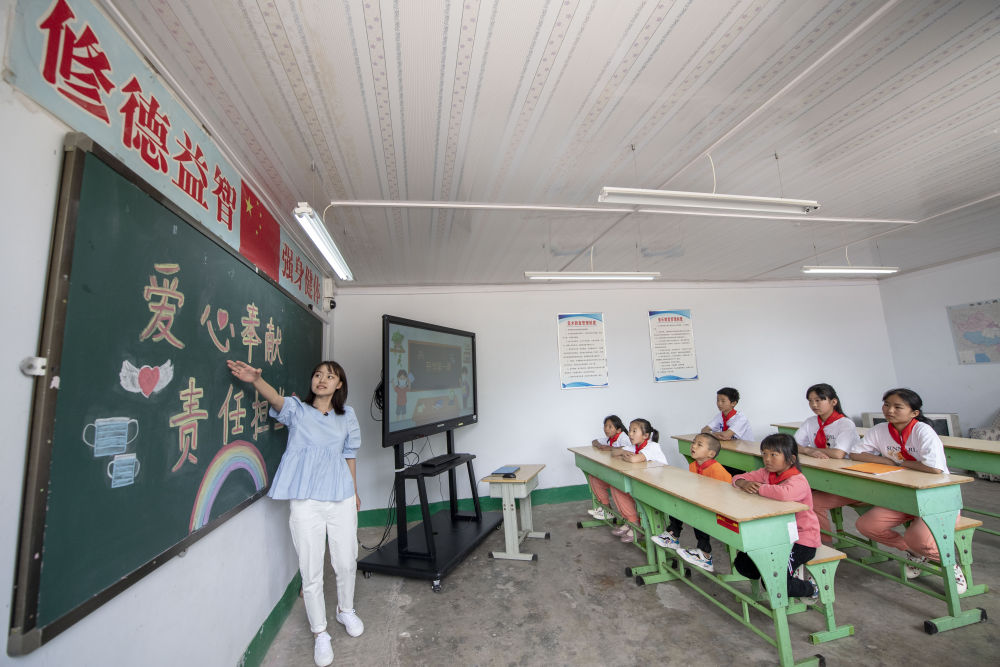 在開學第一課上,特崗教師陳燕子主持召開主題為“愛心奉獻,責任擔當”的班會,為學生講解疫情防控知識、分享抗疫人物故事。