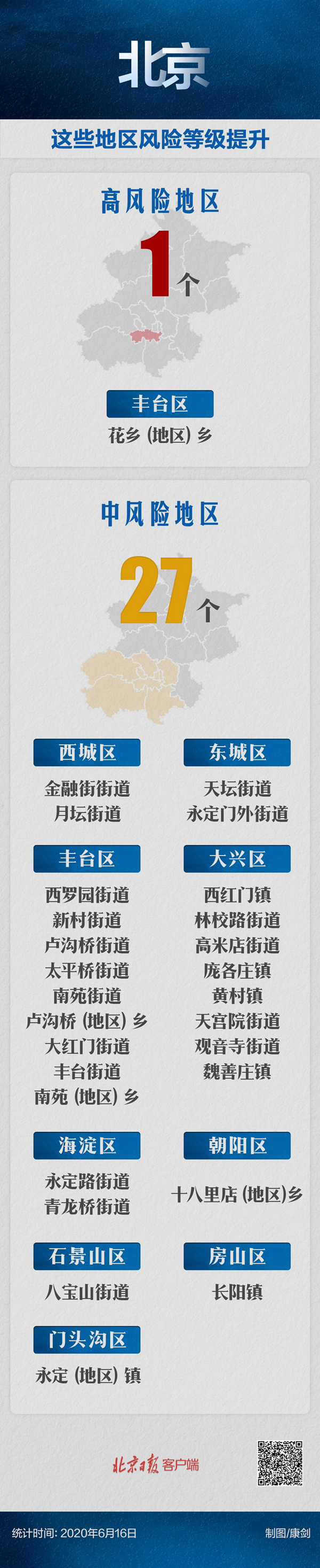 目前,北京已有1個高風險地區,27個中風險地區。