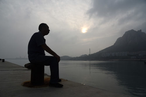7月16日,“泰叔”錢(qián)均堂坐在院夼村“擁軍碼頭”。新華社記者 王凱 攝