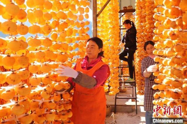資料圖:金黃的柿子掛滿了房前屋后,一片黃澄澄金燦燦。王小勇 攝