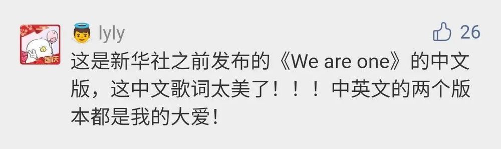 @Monstristing:歌聲有激勵磅礴的氣勢,又兼具一絲絲的溫柔,吟唱鋪展開星辰大海的浩瀚,真是美妙。聽完感覺元氣滿滿,祖國母親生日快樂!