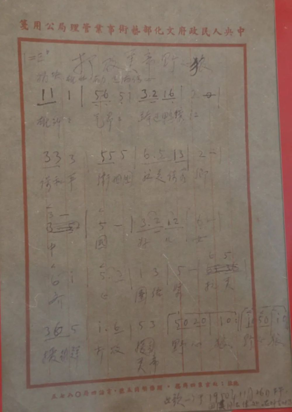 “紀(jì)念中國(guó)人民志愿軍抗美援朝出國(guó)作戰(zhàn)70周年主題展覽”中,展出的《中國(guó)人民志愿軍戰(zhàn)歌》手稿。新華每日電訊記者劉小草攝