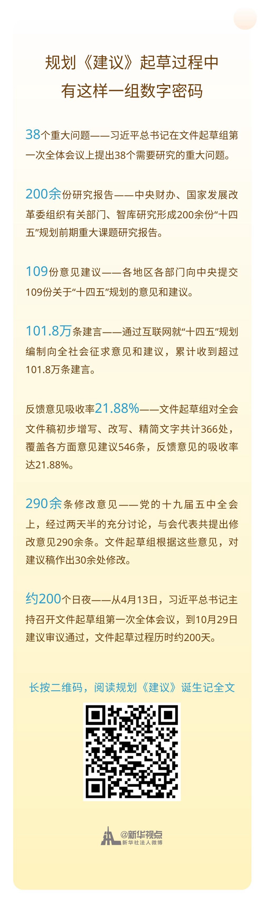 新華社4日播發了規劃《建議》誕生記,這篇萬字長文中,披露了規劃《建議》起草過程中的一組數字密碼。