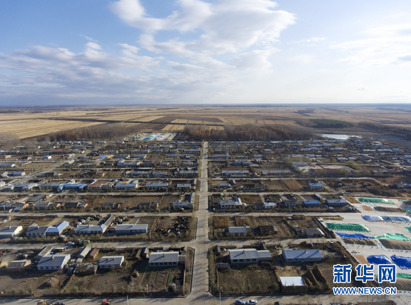 10月29日拍攝的黑龍江省鶴崗市綏濱縣忠仁鎮黎明村風貌(無人機照片)。新華社發
