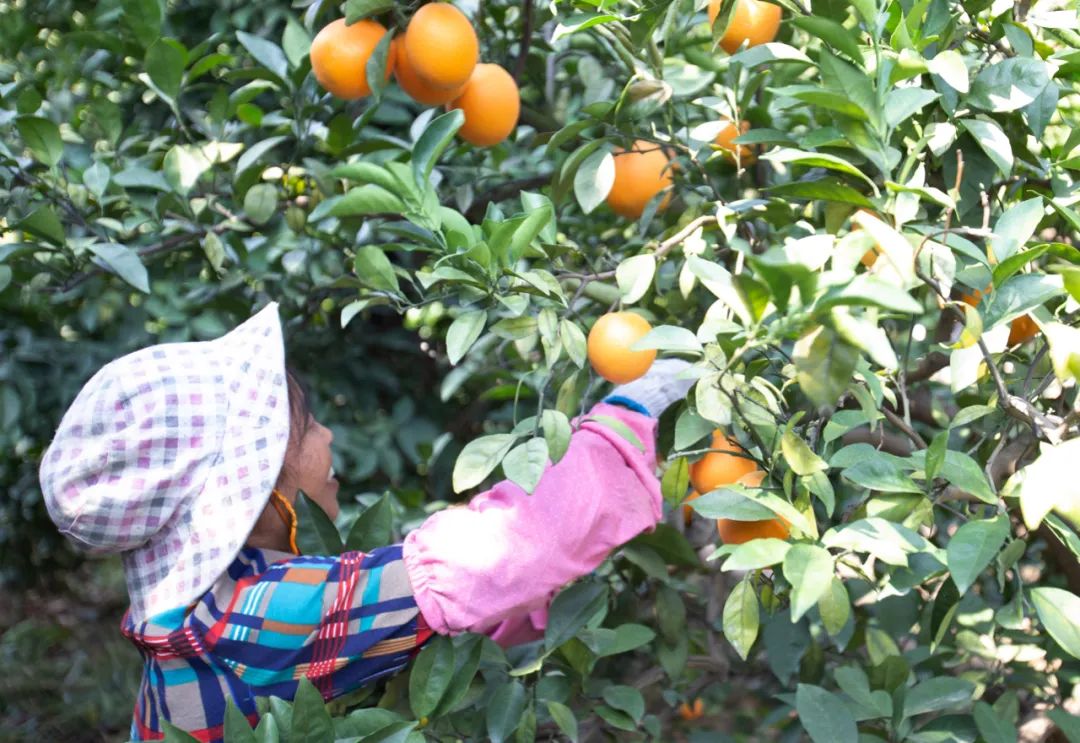 贛州市贛縣區王母渡鎮潭埠村的果農在采摘臍橙 張浩波 攝