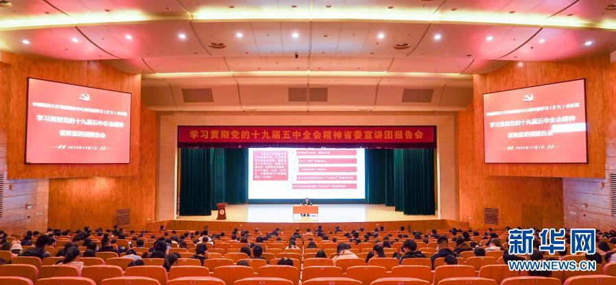 中共江蘇省委宣講團(tuán)在中國(guó)藥科大學(xué)進(jìn)行學(xué)習(xí)貫徹黨的十九屆五中全會(huì)精神專題報(bào)告會(huì)(12月1日攝)。新華社記者 李博 攝