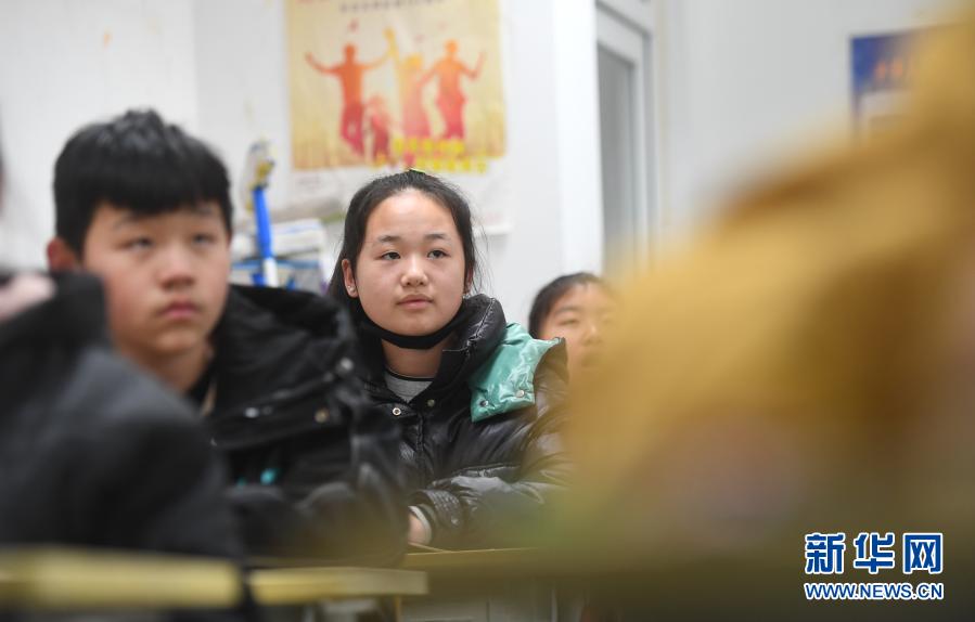 韓景芳(左二)在阜平縣龍泉關(guān)學(xué)校教室上課(11月25日攝)。新華社記者 朱旭東 攝