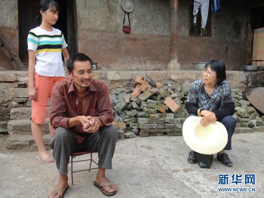 張桂梅(右)在進行家訪(2011年7月攝)。新華社發(華坪縣委宣傳部供圖)