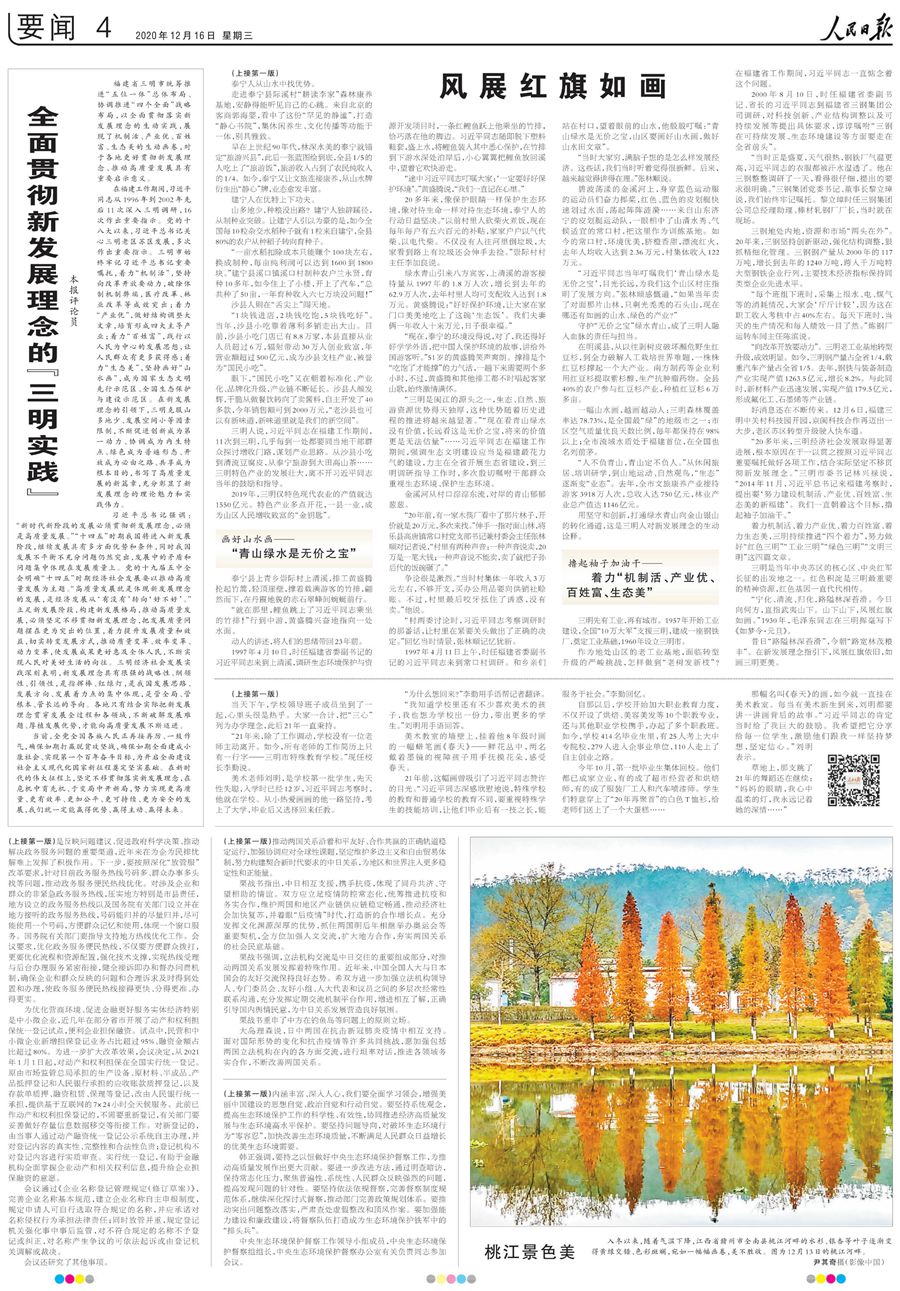 習近平總書記的殷切牽掛,浸潤著這片“風展紅旗如畫”的熱土。如今的三明人,牢記于心的是總書記的殷殷囑托,受益最大的是結合實際把新發展理念貫穿發展全過程和各領域。