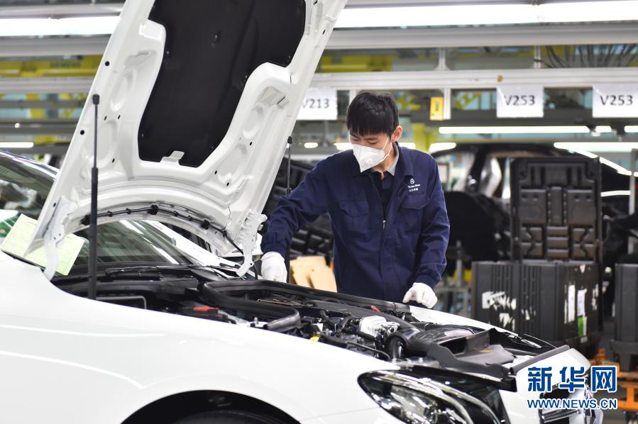 工人在北京奔馳總裝二工廠生產線上作業(2月21日攝)。新華社記者 陳鐘昊 攝