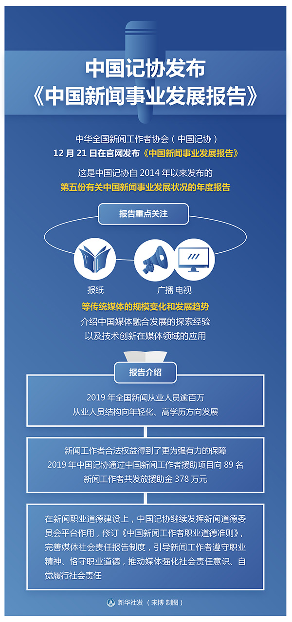 新華社北京12月21日電 中華全國(guó)新聞工作者協(xié)會(huì)(中國(guó)記協(xié))21日在官網(wǎng)發(fā)布《中國(guó)新聞事業(yè)發(fā)展報(bào)告》。這是中國(guó)記協(xié)自2014年以來發(fā)布的第五份有關(guān)中國(guó)新聞事業(yè)發(fā)展?fàn)顩r的年度報(bào)告。