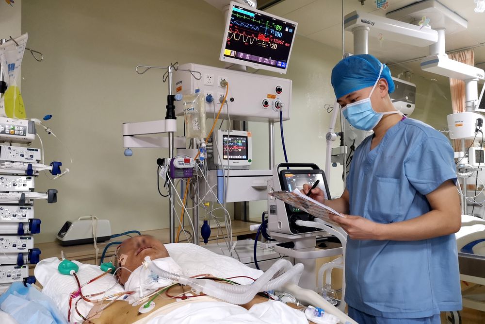 12月18日,青島大學(xué)醫(yī)學(xué)院研究生蘇柯帆在醫(yī)院里實習(xí)。
