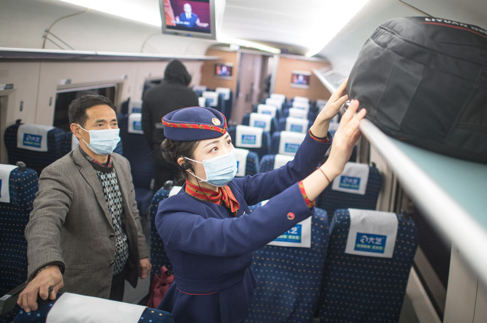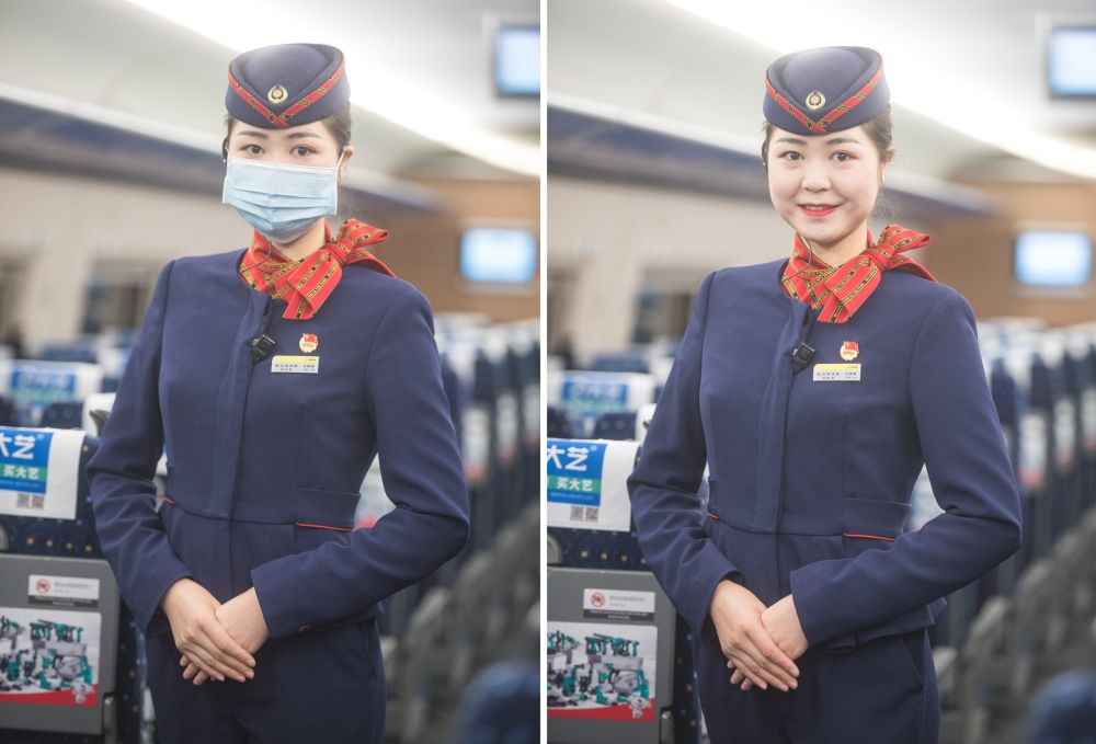 “現(xiàn)在說得最多的就是,請乘客戴好口罩、做好防護(hù)。經(jīng)歷了這么大一場疫情,感覺肩上的擔(dān)子更重了,做好服務(wù)的同時(shí)更要確保每一名乘客的安全。”站在記者面前的中國鐵路武漢局集團(tuán)有限公司武漢客運(yùn)段高鐵乘務(wù)員艾婷婷20歲剛出頭,言語中顯露出超出同齡人的成熟。