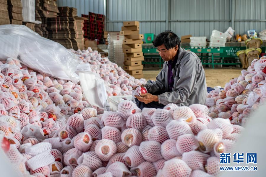 云南省會澤縣娜姑鎮牛泥塘村童盟種植專業合作社的農民在分揀石榴(2020年9月29日攝)。新華社記者 胡超 攝