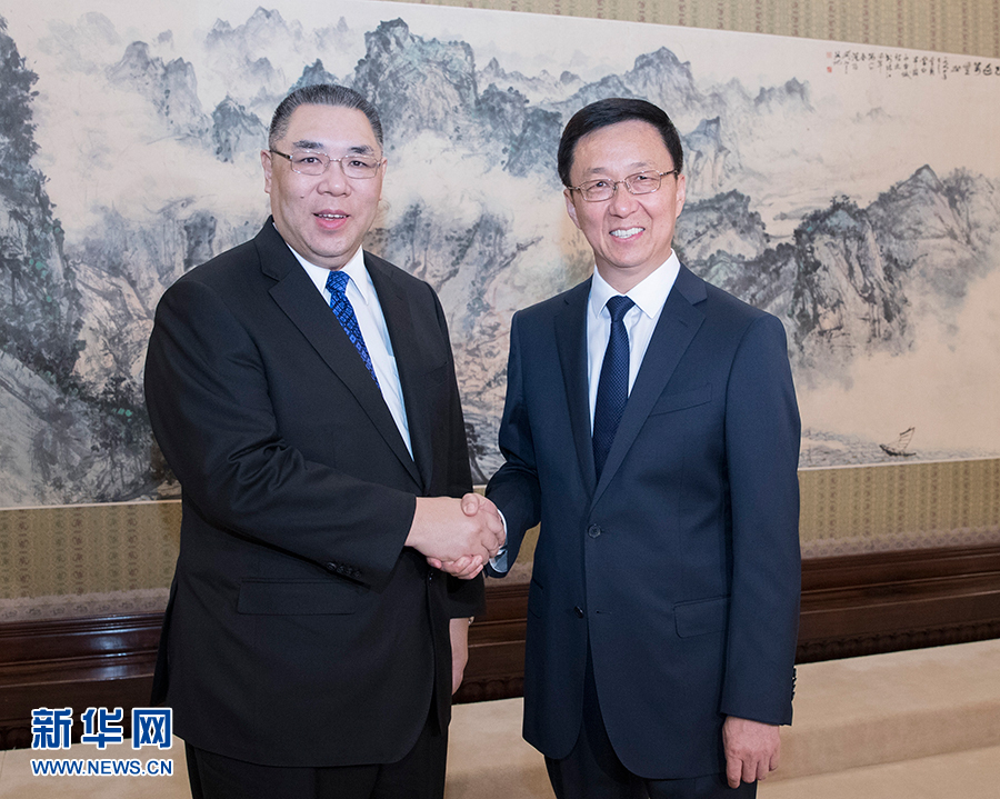 新華社北京6月28日電(記者劉歡)中共中央政治局常委、國(guó)務(wù)院副總理韓正28日上午在中南海紫光閣會(huì)見(jiàn)澳門特別行政區(qū)行政長(zhǎng)官崔世安,就《粵港澳大灣區(qū)發(fā)展規(guī)劃綱要》聽(tīng)取意見(jiàn)和建議。