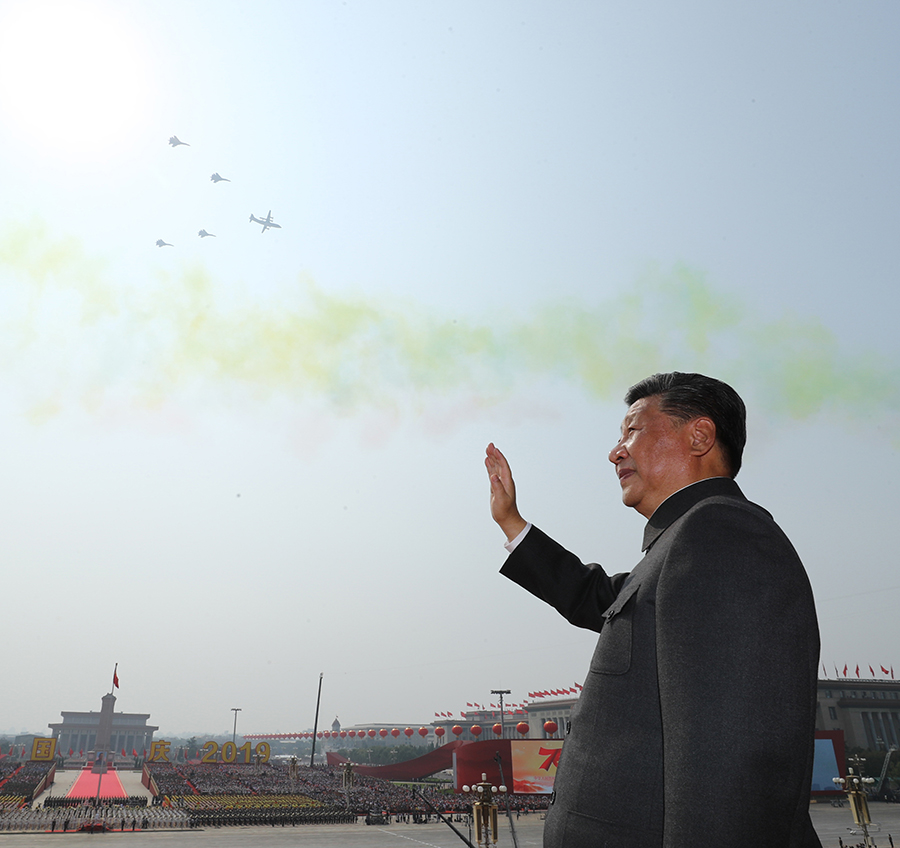 10月1日,慶祝中華人民共和國(guó)成立70周年大會(huì)在北京天安門廣場(chǎng)隆重舉行。這是中共中央總書記、國(guó)家主席、中央軍委主席習(xí)近平檢閱受閱部隊(duì)。 新華社記者 李濤 攝
