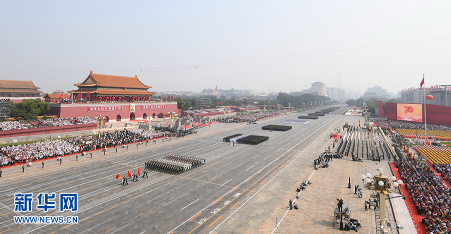 ---10月1日上午,慶祝中華人民共和國(guó)成立70周年大會(huì)在北京天安門廣場(chǎng)隆重舉行,20余萬軍民以盛大的閱兵儀式和群眾游行歡慶共和國(guó)70華誕。中共中央總書記、國(guó)家主席、中央軍委主席習(xí)近平發(fā)表重要講話并檢閱受閱部隊(duì)。" />