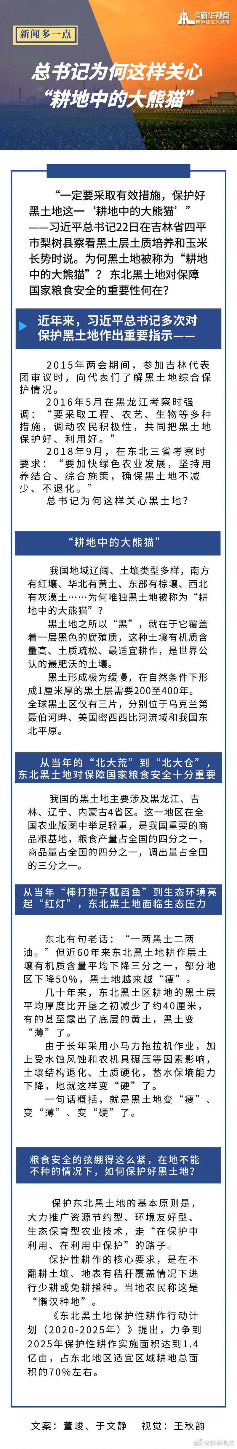 “一定要采取有效措施,保護好黑土地這一‘耕地中的大熊貓’”——習近平總書記22日在吉林省四平市梨樹縣察看黑土層土質培養和玉米長勢時說。為何黑土地被稱為“耕地中的大熊貓”? 東北黑土地對保障國家糧食安全的重要性何在?一起戳圖了解