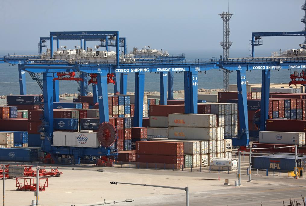 这是2025年10月7日拍摄的秘鲁钱凯港码头摆放的集装箱。新华社发(玛丽安娜·巴索摄)