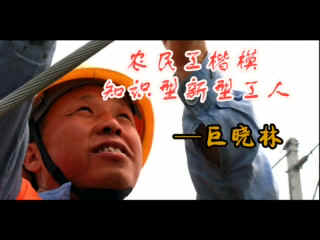 巨曉林  男,漢族,中共黨員,1962年9月出生,陜西省岐山縣人,高中文化。1987年3月成為中國中鐵電氣化局一公司的農(nóng)民工,參加工作23年來,先后參與了大秦線、京鄭線、哈大線、遷曹線等十幾條國家重點電氣化鐵路工程的施工,創(chuàng)新施工方法43項,創(chuàng)造經(jīng)濟效益600多萬元。他主編的《接觸網(wǎng)施工經(jīng)驗和方法》,被配發(fā)給接觸網(wǎng)工作人員作為工具書。他熱愛生活,樂于助人,雖不善言辭,卻喜歡寫詩和畫畫。他用忠誠和勤奮贏得了領(lǐng)導(dǎo)和工友們的一致贊揚,用智慧和汗水譜寫出知識型新型工人的精彩華章。