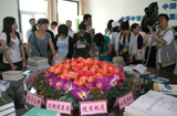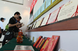 記者們查看巨曉林的詩歌、漫畫和獲得的榮譽證書