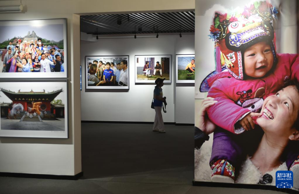 6月22日,参观者在位于三门峡市的中国摄影艺术馆内参观拍摄展出的照片。