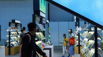 7月30日,在天津数字艺术博物馆,学生们沉浸式参观艺术作品。