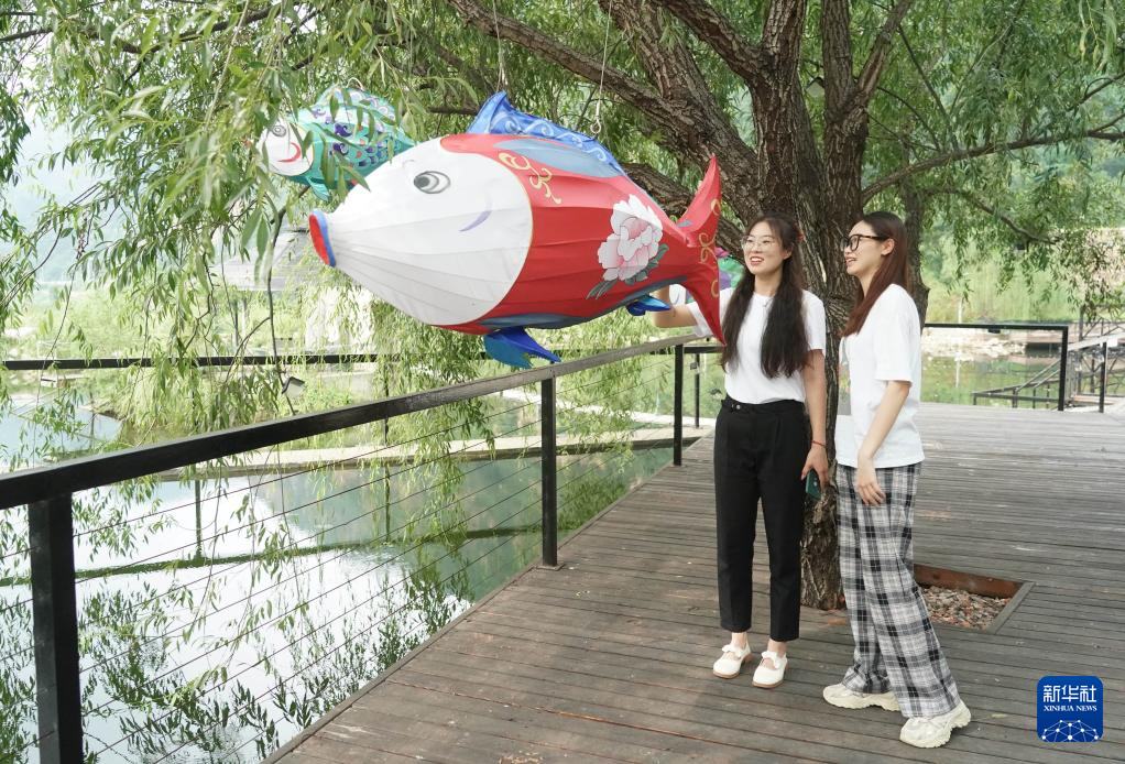8月8日,观众在位于北京市平谷区的万圣谷美术馆外参观艺术作品。