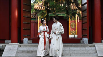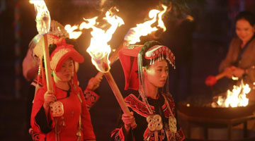 8月15日,小模特在艺术节开幕式上展示以海洋生物多样性保护为主题的服装。