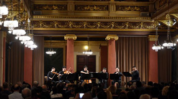 8月15日,观众在艺术节现场参观生态主题摄影作品。