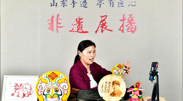 艺术节现场展示的手工作品《青山绿水》(8月15日摄)。该作品由设计师和海派钩针编结非遗传承人共同创作,呼吁人们保护山河草木。