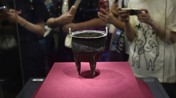 艺术节现场展示的用易拉罐创作的环保手工作品(8月15日摄)。