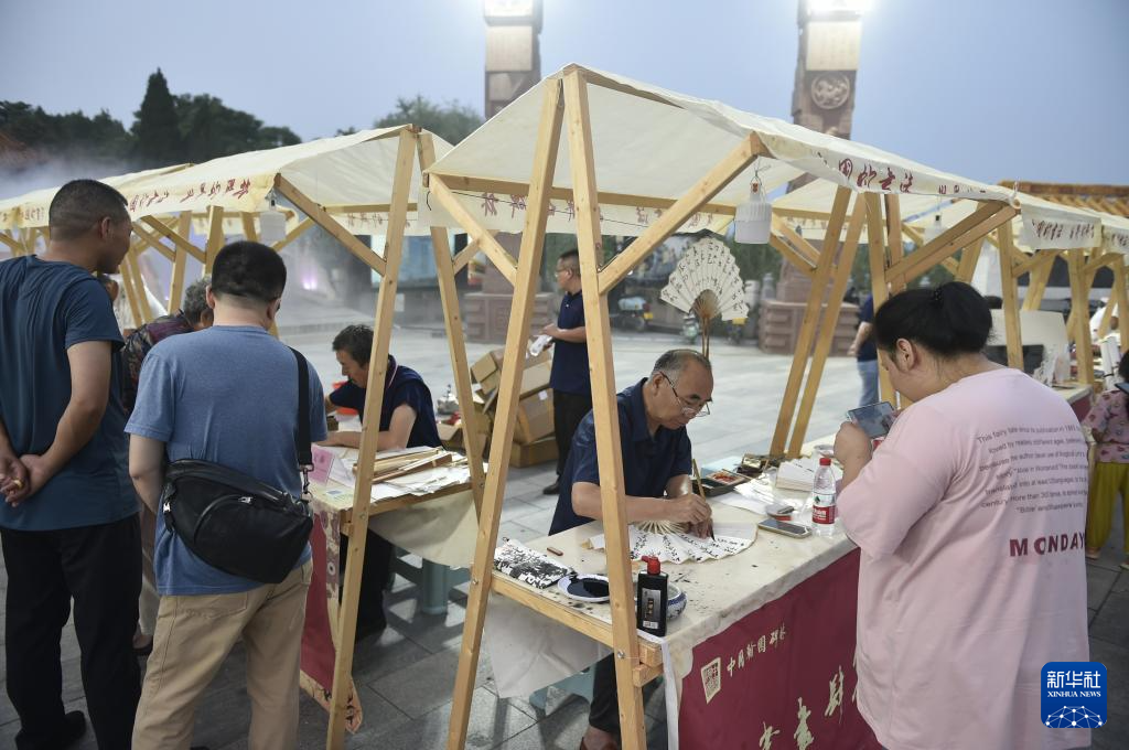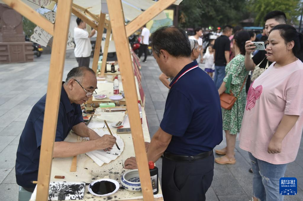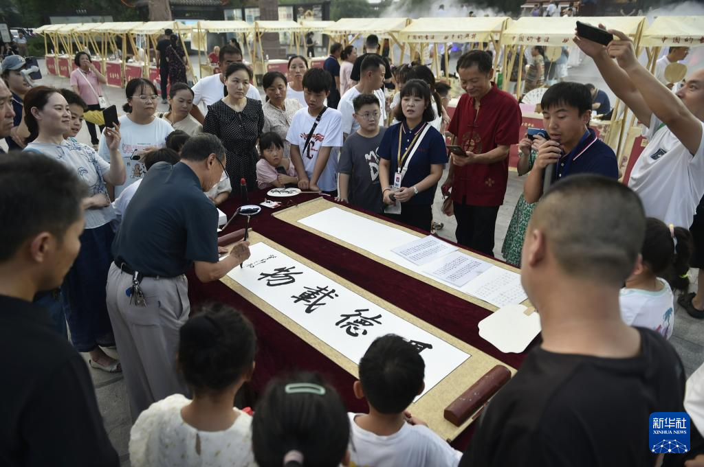 暑期以来,位于河南省开封市的中国翰园碑林景区利用周末举办“书画肆集”特色文化活动,邀请书画家现场挥毫泼墨,独特的文化大餐吸引市民和游客前来驻足观赏、游园休闲。