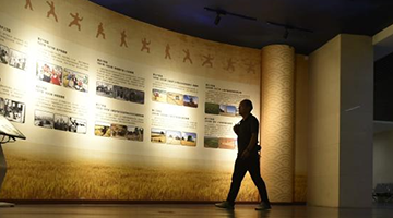 9月23日,参观者在湖北省博物馆长江文明特展上观看展出的太阳人石刻。