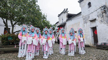 4月9日,申涛在位于营口市的家中指导女儿申圣丹进行缂丝创作。