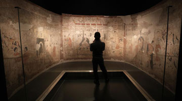 这是即将展出的船形杯局部(11月13日摄)。船形杯是古代俄罗斯最具特色的容器之一。在宴会上,船形杯被用来盛放最受欢迎的俄罗斯饮料——蜂蜜或蜂蜜酒。