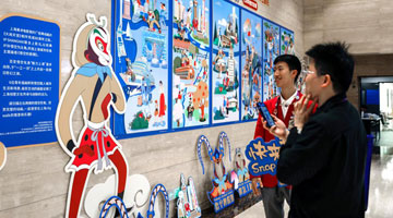 11月13日,工作人员介绍即将展出的船形杯(右)与茶炊。
