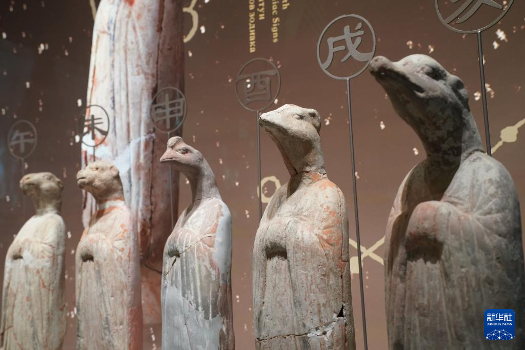 西部机场博物馆展出的唐代文物陶十二生肖俑(2月26日摄)。
