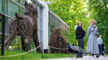 5月18日,家长带着孩子在江苏常州博物馆参观熊猫时代科普特展。