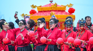 3月2日,人们在江苏省连云港市连云区表演民俗节目。